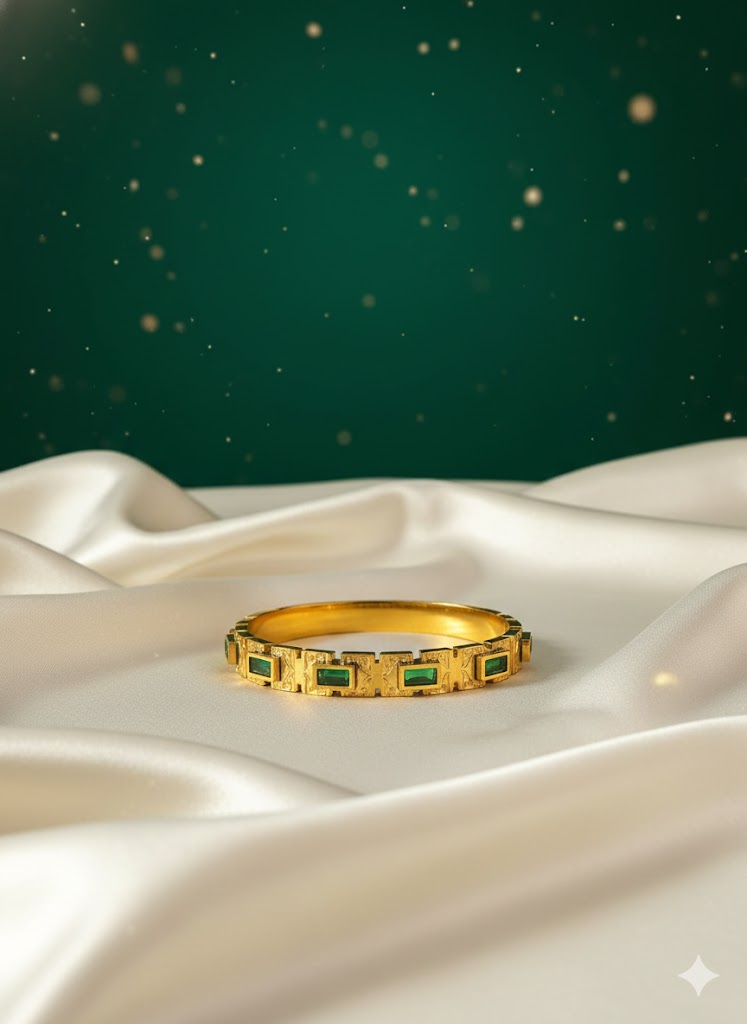 Capture the essence of royal heirlooms with The Golden Antique Emerald Row Bangle.