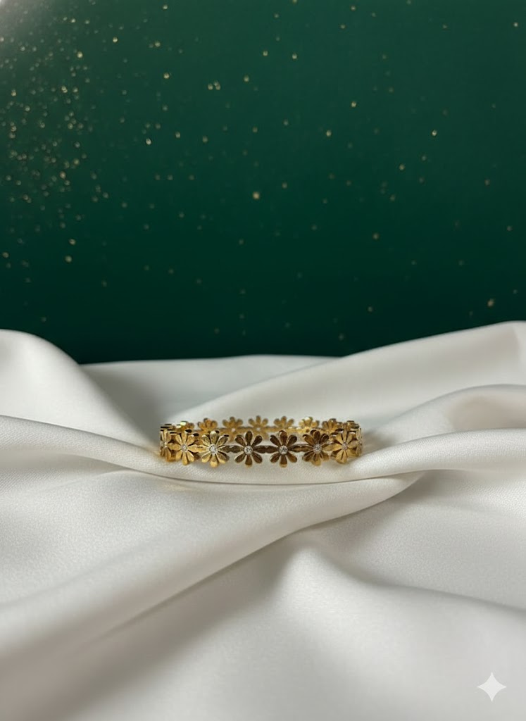 Embrace the sweetness of nature with The Golden Daisy Chain Eternity Bangle. This