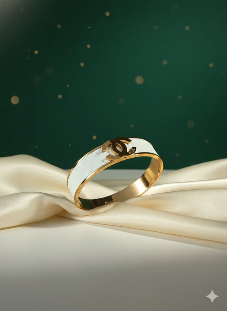 Bring the runway to your wrist with The Golden Quilted Icon Cuff. This bangle is a