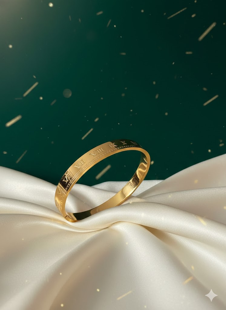 Celebrate time with The Golden Roman Moment Bangle. A variation on a timeless