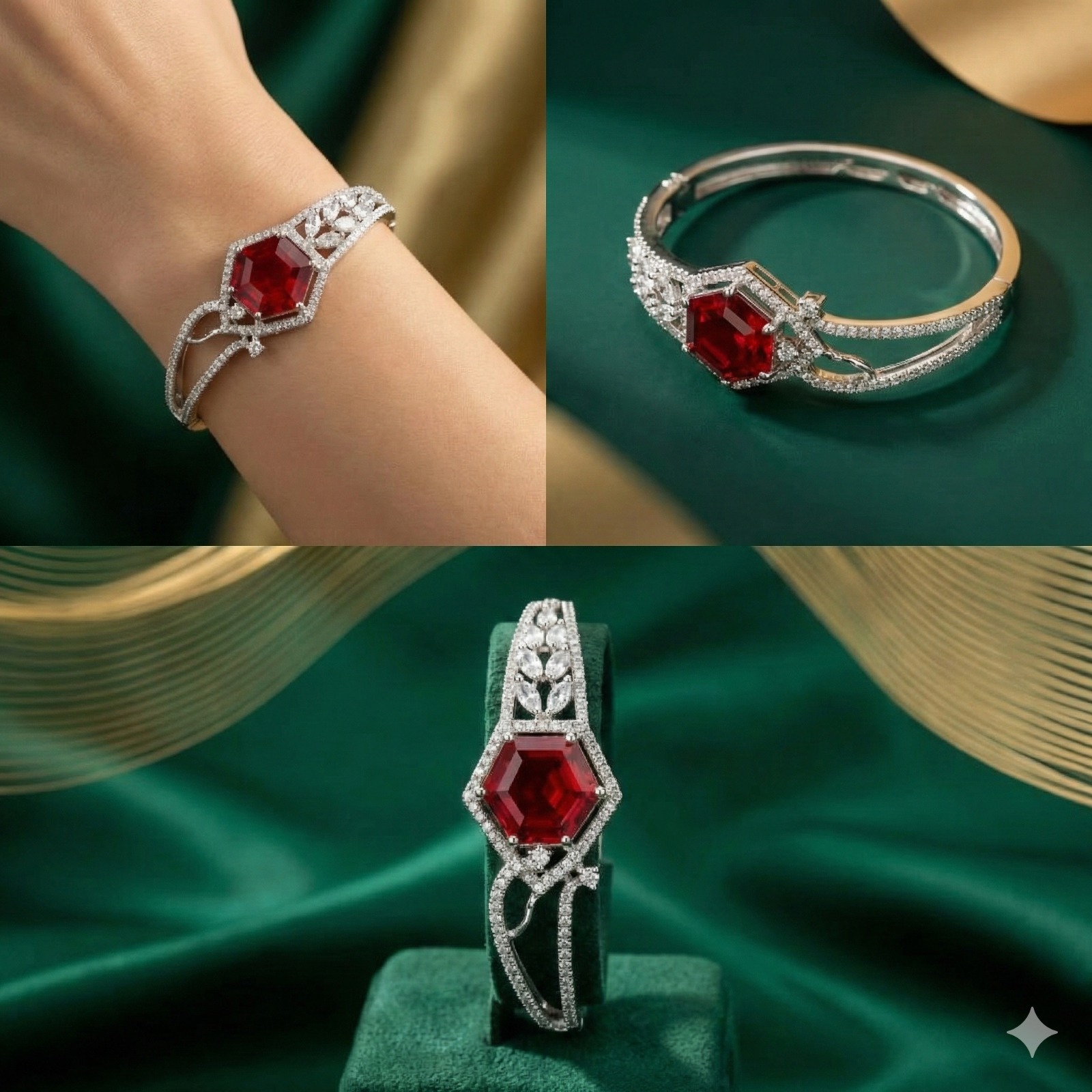 ● Main Stone: Hexagon-cut Cubic Zirconia (Ruby Red).