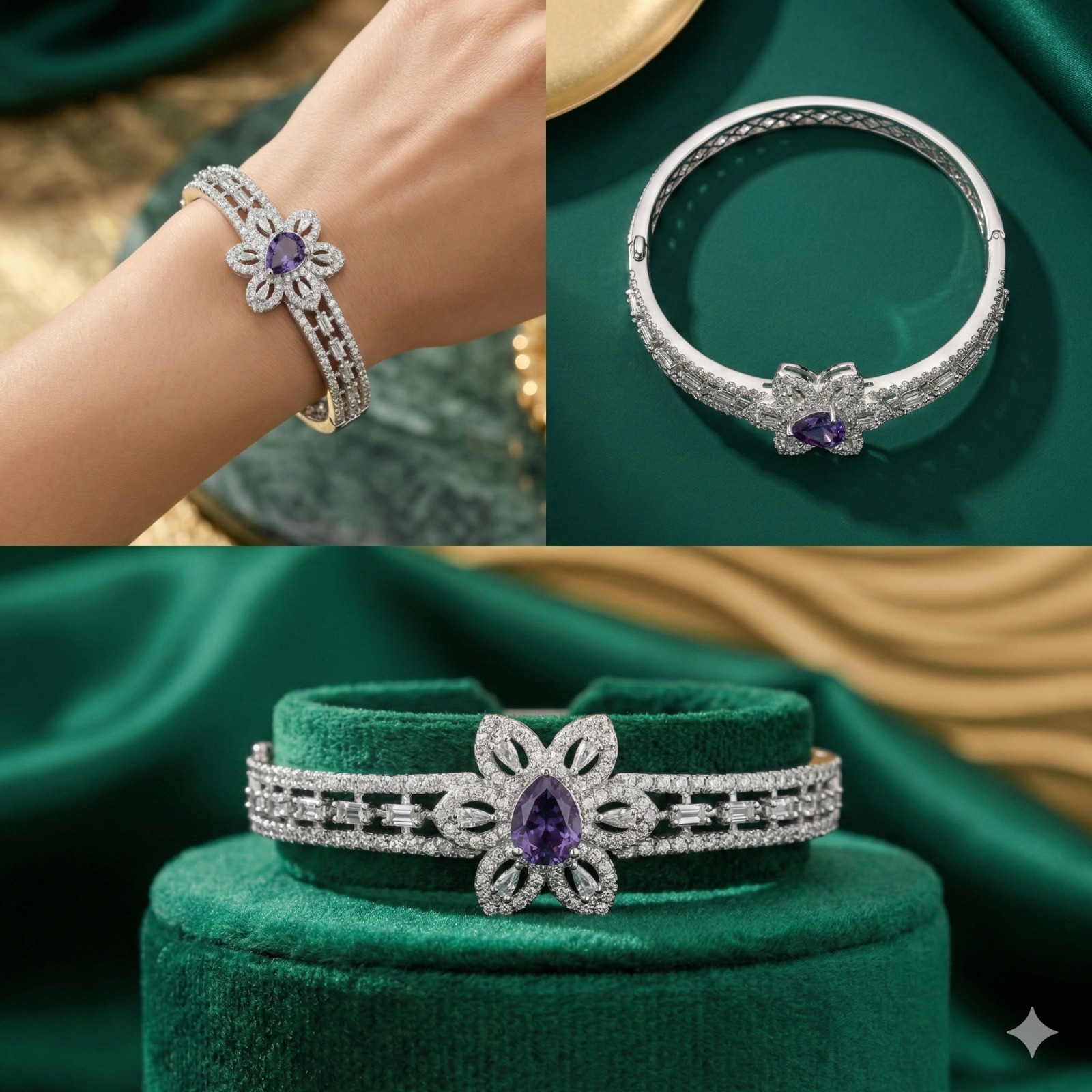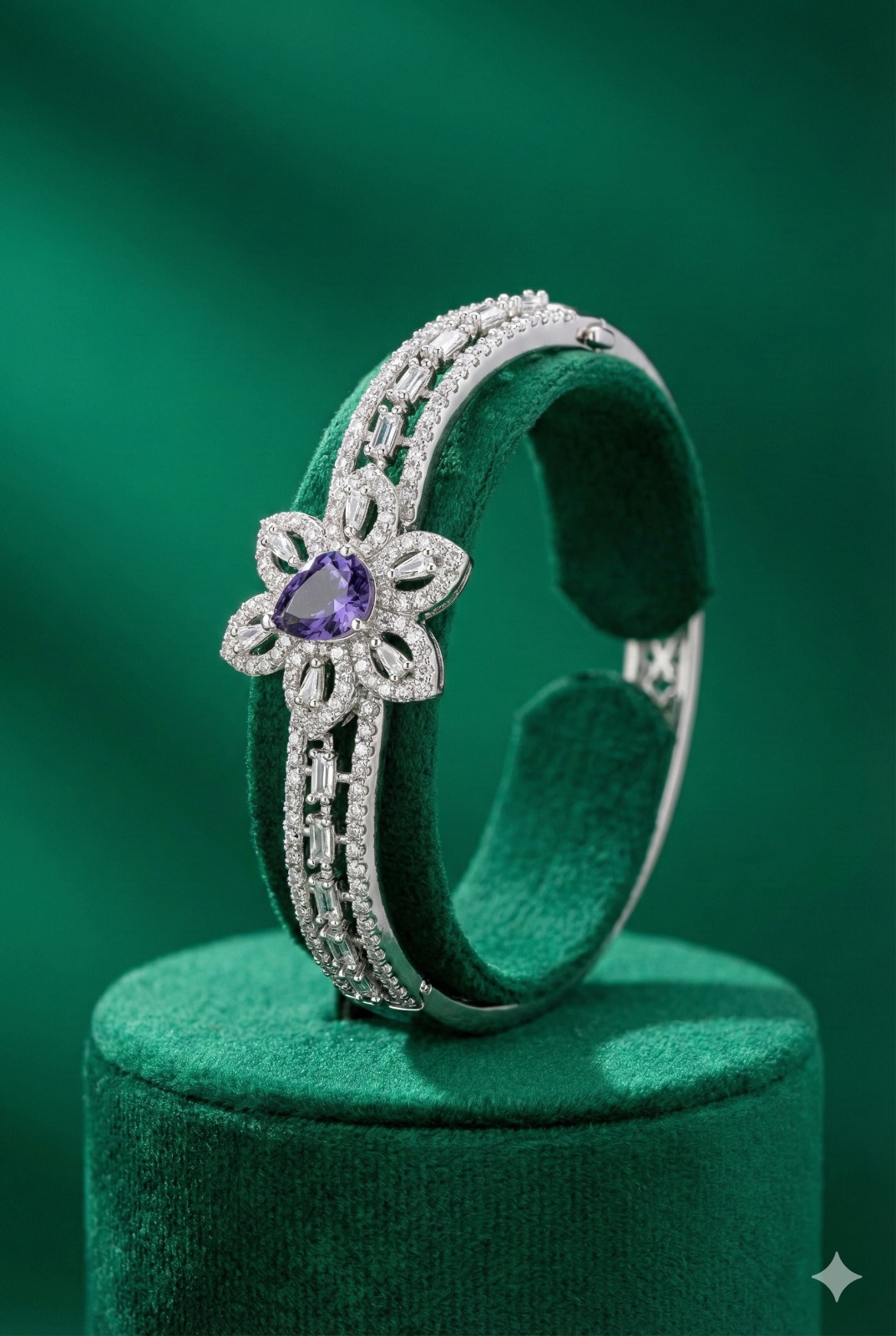 The Violet Baguette Bloom Bangle is designed for those who appreciate the finer things.
